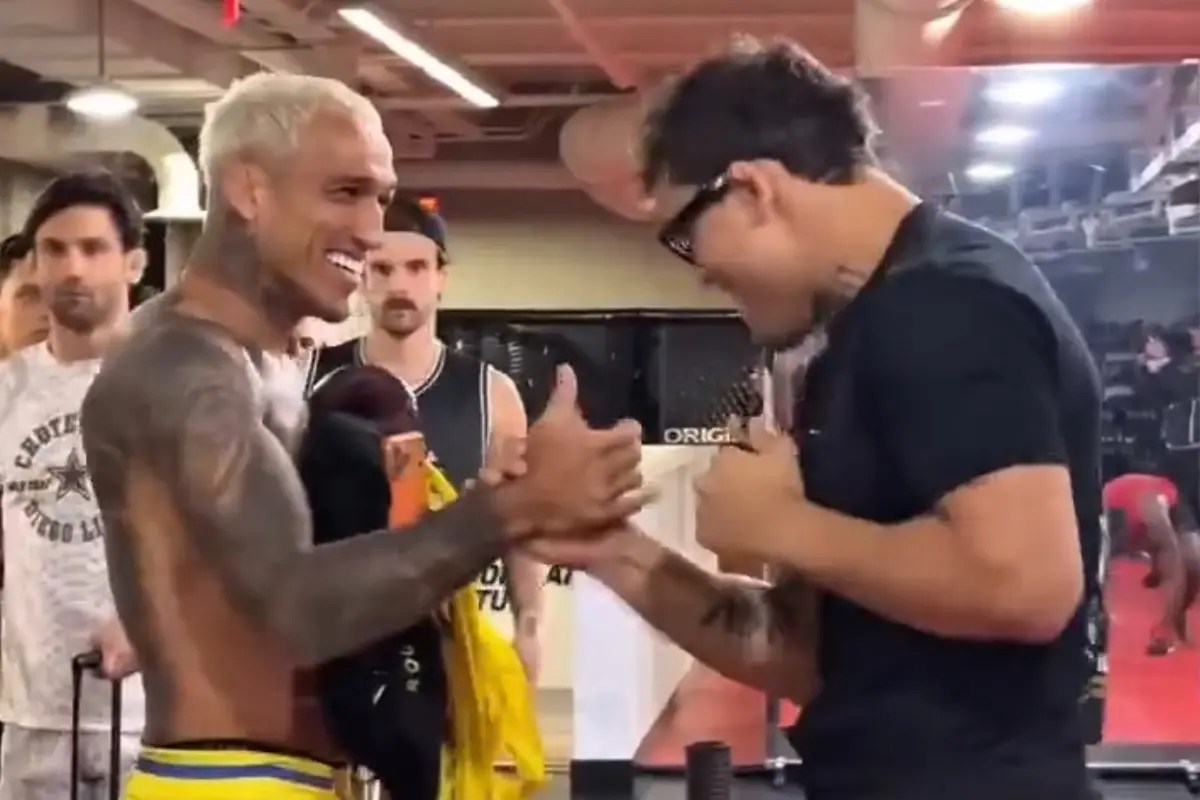 Em vídeo publicado pelo perfil ‘Red Corner MMA’, os atletas, que estão utilizando as dependências do Instituto de Performance do UFC, conhecido como UFC PI, aparecem sorrindo e se abraçando durante o encontro. Ao final, foi deixada uma mensagem em forma de legenda para quem torcerá por Max Holloway e Reinier De Ridder, adversários de ‘Do Bronx’ e Borralho, respectivamente.