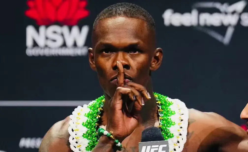 Israel Adesanya em pesagem para o UFC 293. Foto: Reprodução/Twitter @stylebender