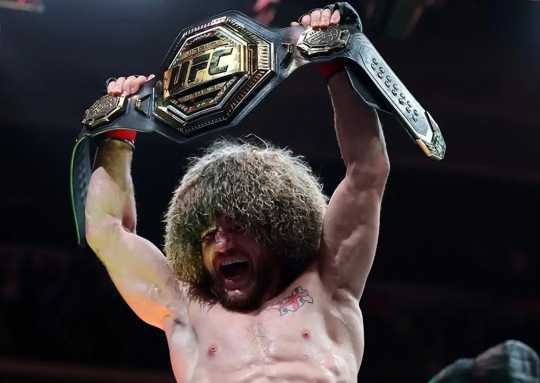 Merab Dvalishvili com o cinturão no UFC 316 (Foto: Reprodução/Instagram)