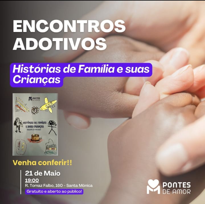 No próximo dia 21 de maio, às 19h, a Pontes de Amor, organização que atua no apoio à adoção e no fortalecimento dos vínculos familiares, realiza mais uma edição do Encontros Adotivos, um espaço dedicado à escuta, ao acolhimento e à construção de vínculos afetivos, especialmente entre famílias por adoção, pretendentes e todos que se interessam pelas múltiplas formas de ser família. O evento acontece na Rua Thomaz Falbo, 160, e nesta edição traz como tema “Histórias de famílias e suas crianças”.